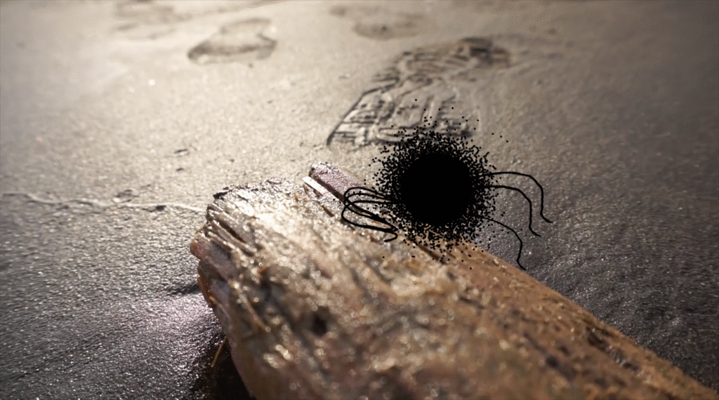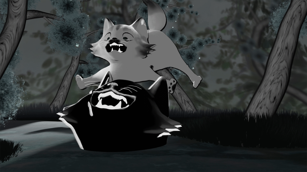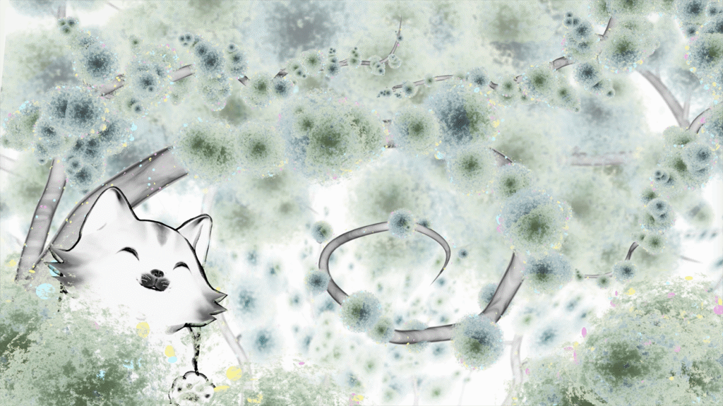 A stylized 3D animation created using Blender, featuring a 2.5D style, combining stylized ink brushstrokes with self-developed geometry nodes modifier.